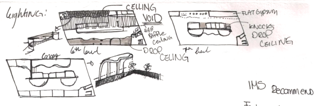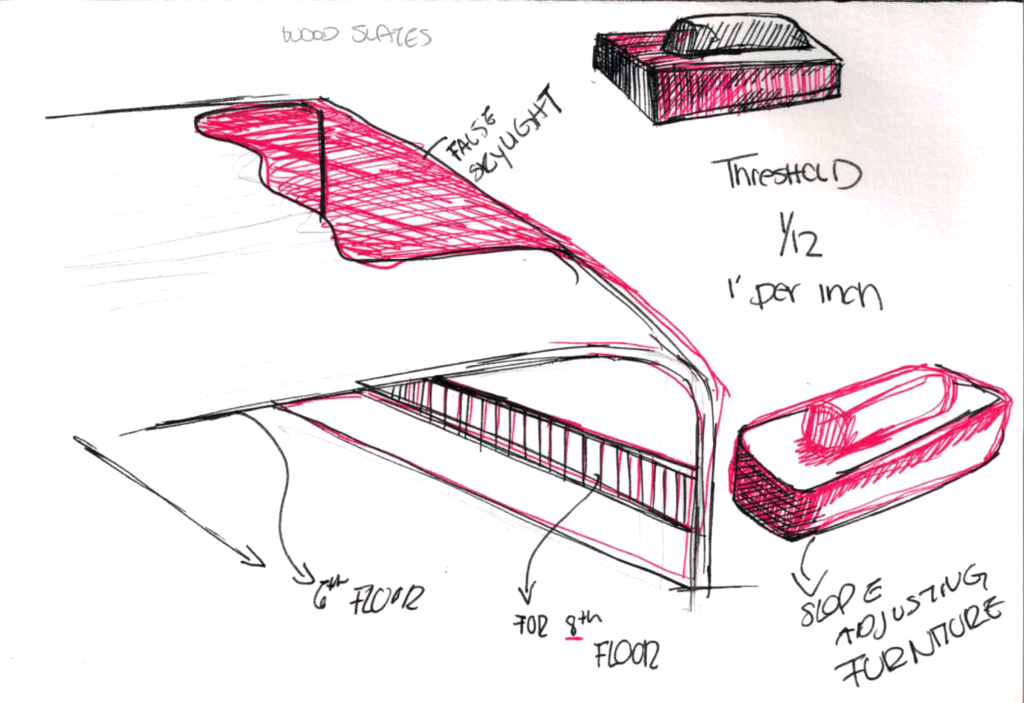 Repetition of flow between floors canopy is the negative shape made on the 6th floor